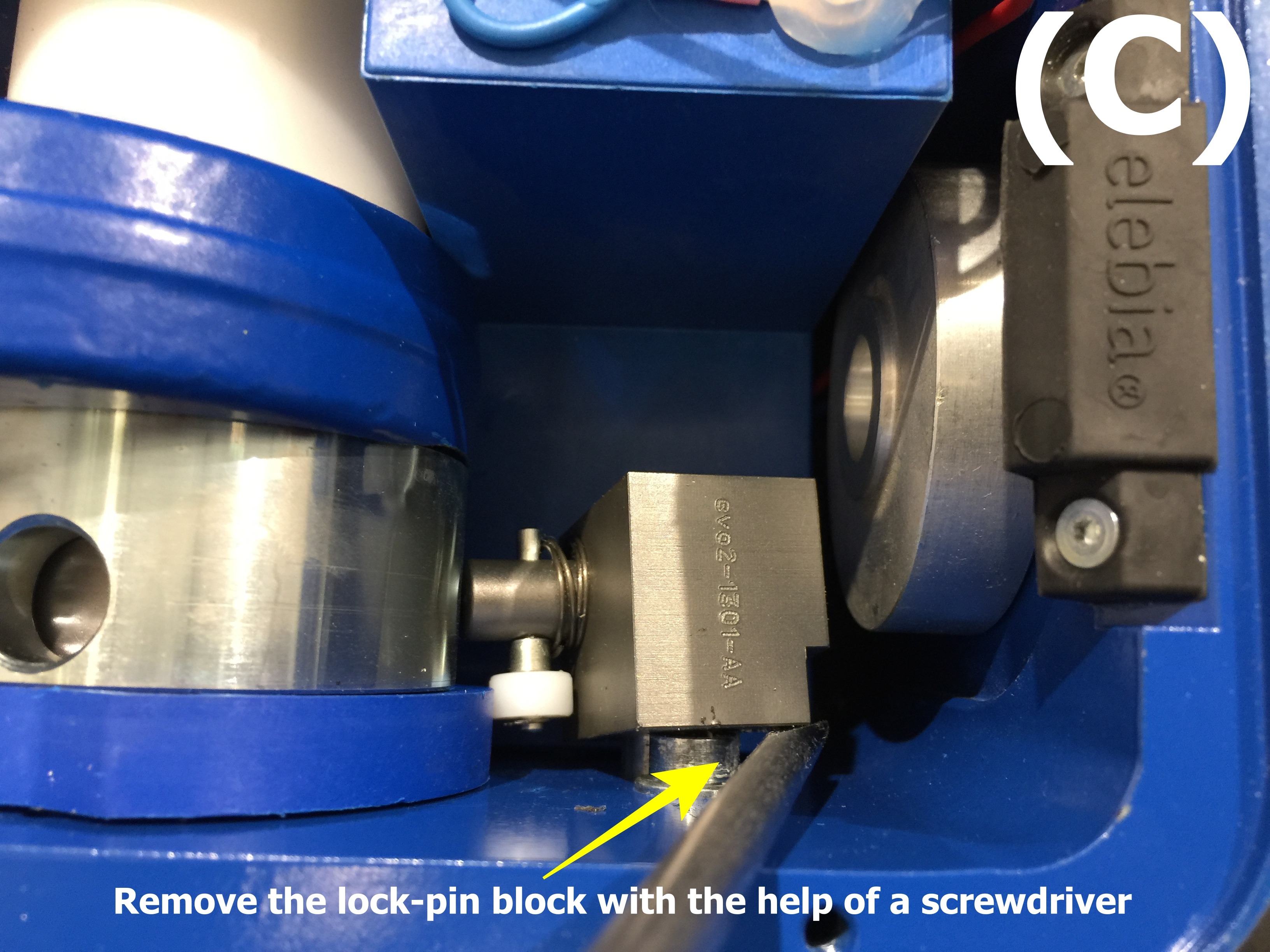 > 3. Remove the the lock pin's block (preferably with the help of a screwdriver)